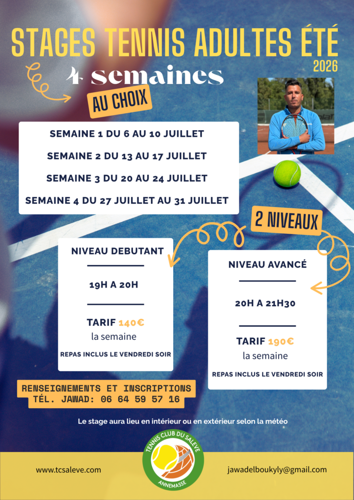 Stage Tennis Jeunes et Adultes Été 2026